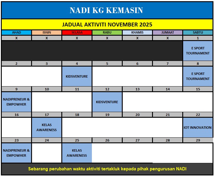 TARIKH : 09 NOVEMBER 2025 MASA : 03:00 PETANG – 04:00 PETANG TEMPAT : NADI KG KEMASIN AKTIVITI : KELAS KEUSAHWANAN